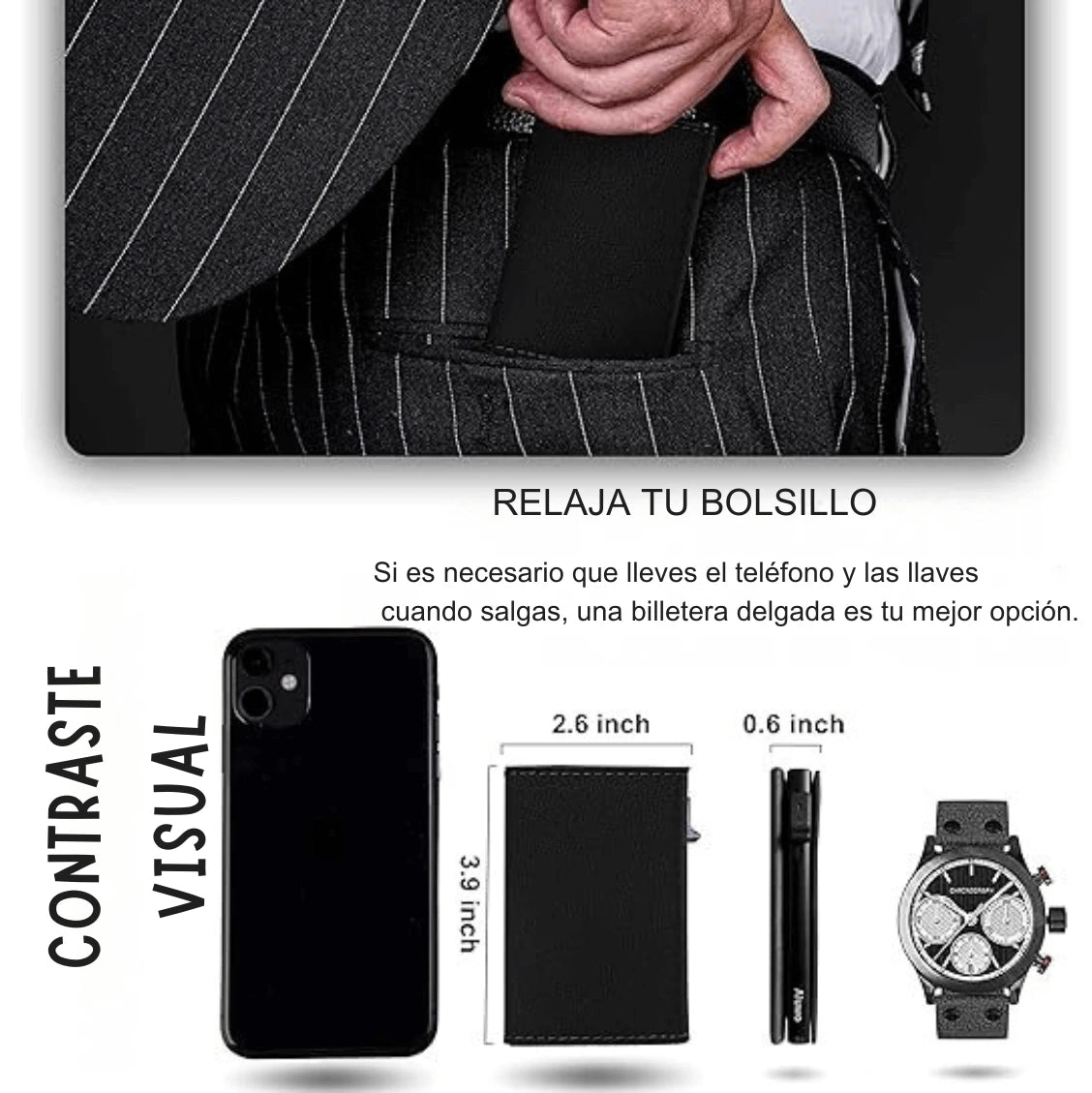 Sí, el diseño de protección RFID bloquea señales de escaneo no deseadas para proteger tu información y evitar robos digitales.