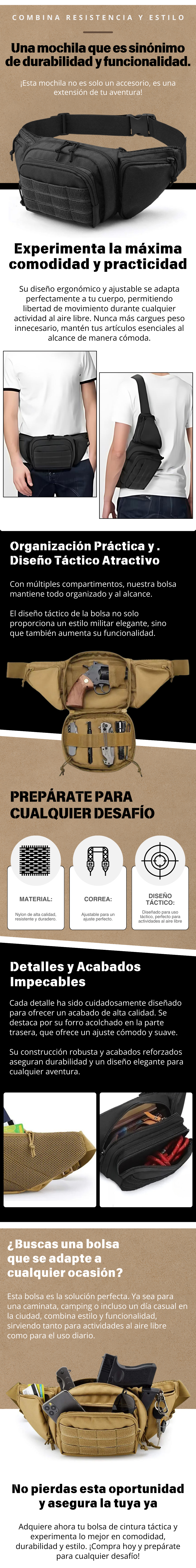 Está confeccionado con tela de nylon 900D, garantizando resistencia y durabilidad en condiciones extremas.