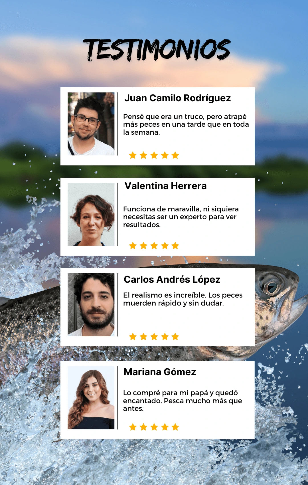Es 100% reutilizable, resistente al agua y duradero, asegurando muchas jornadas de pesca con éxito.