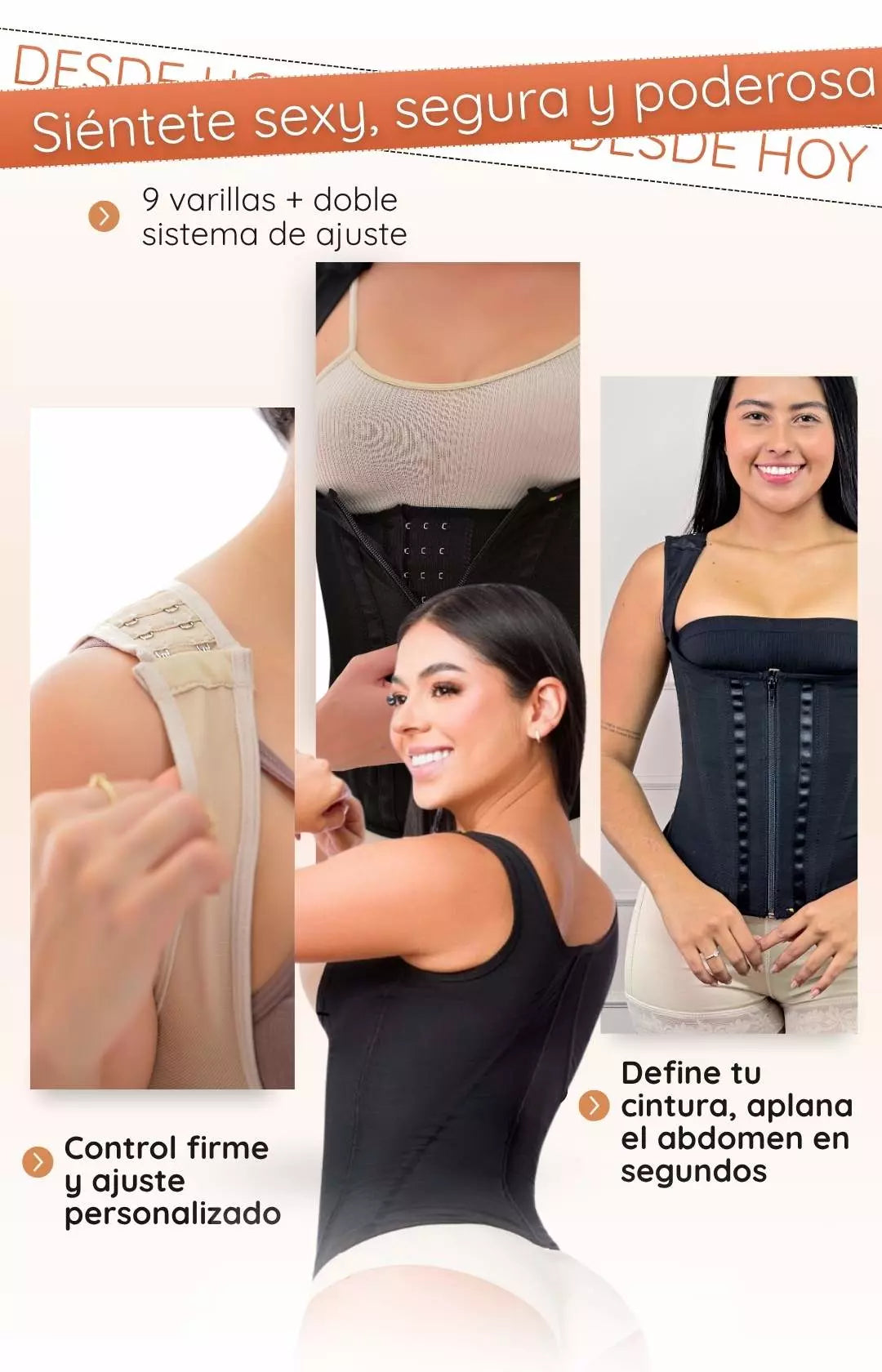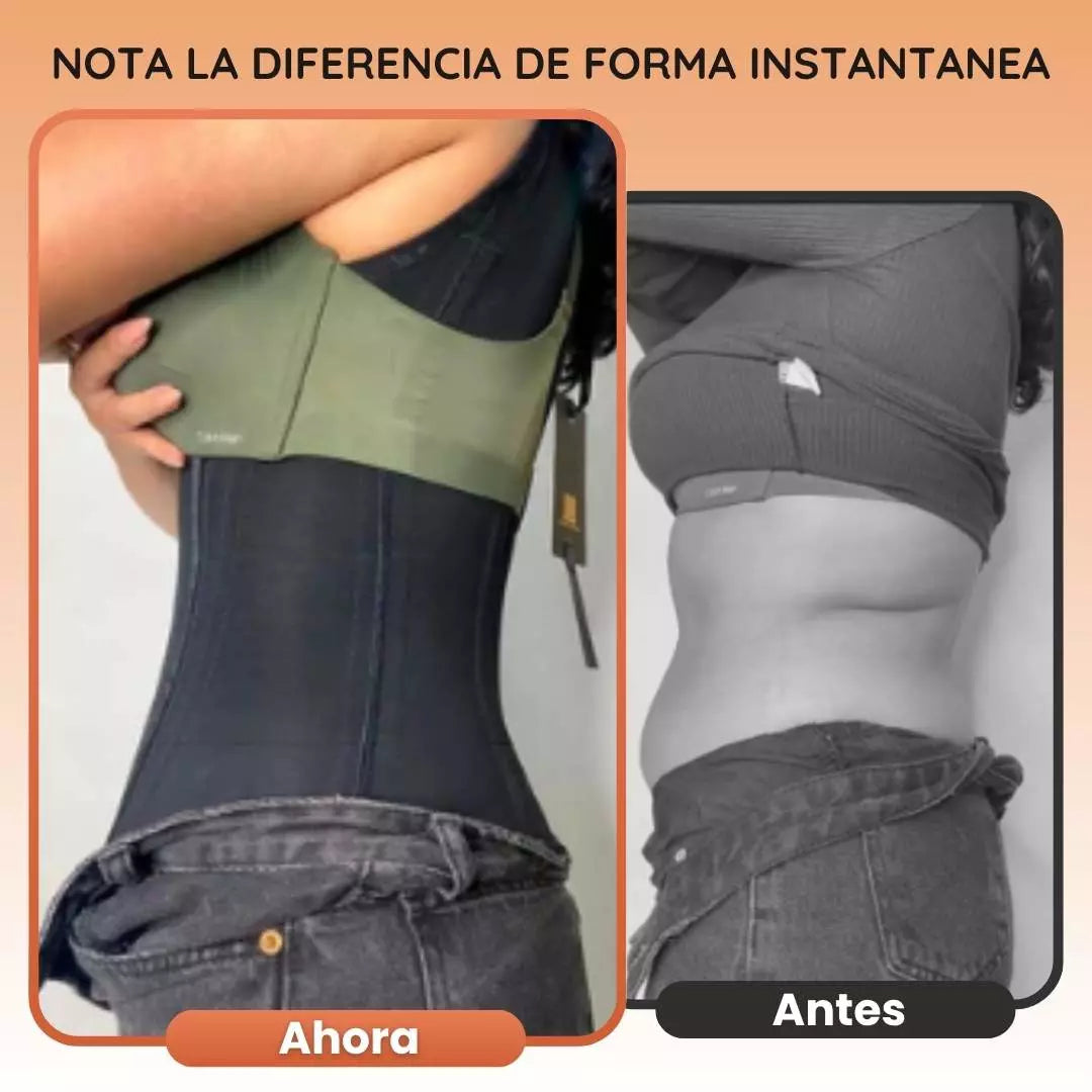 No; aunque define la cintura, tiene ajuste personalizado con cremalleras y broches internos, y su diseño permite movilidad sin que apriete excesivamente.