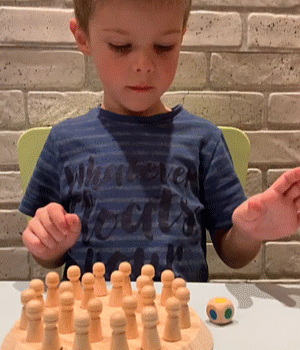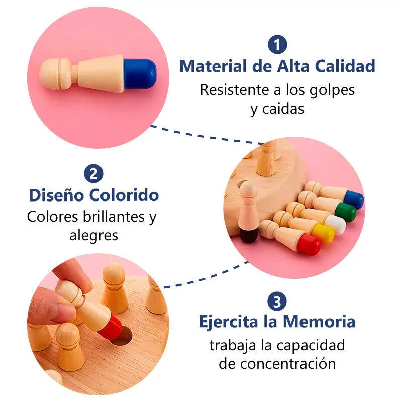 Es un divertido juego de memoria basado en el método Montessori. El objetivo es memorizar y recrear patrones con fichas de colores en el menor tiempo posible.
