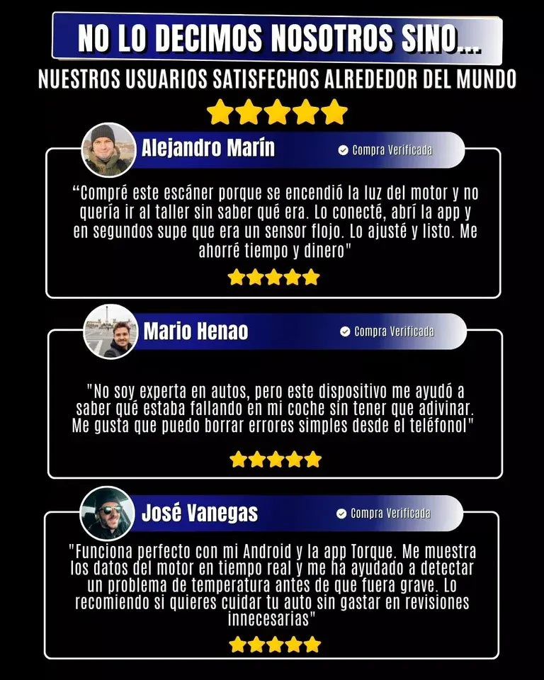 Sí, funciona con la mayoría de los autos a gasolina fabricados desde 1996 (EE.UU.) y desde 2003 (Europa). No compatible con autos eléctricos, híbridos o algunos diésel.