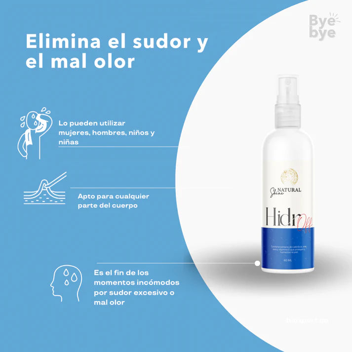 Hidroff actúa directamente sobre las glándulas sudoríparas, reduciendo significativamente la sudoración sin obstruir los poros ni causar irritación. Su fórmula está diseñada para ofrecer una protección prolongada de hasta 48 horas.